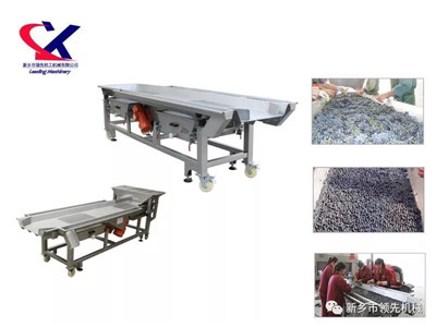 1.穗选振动筛:采摘后,采用振动筛对葡萄果穗进行初次筛选,去除葡萄中的砂砾、烂果、不成熟的二次果和枝叶等。