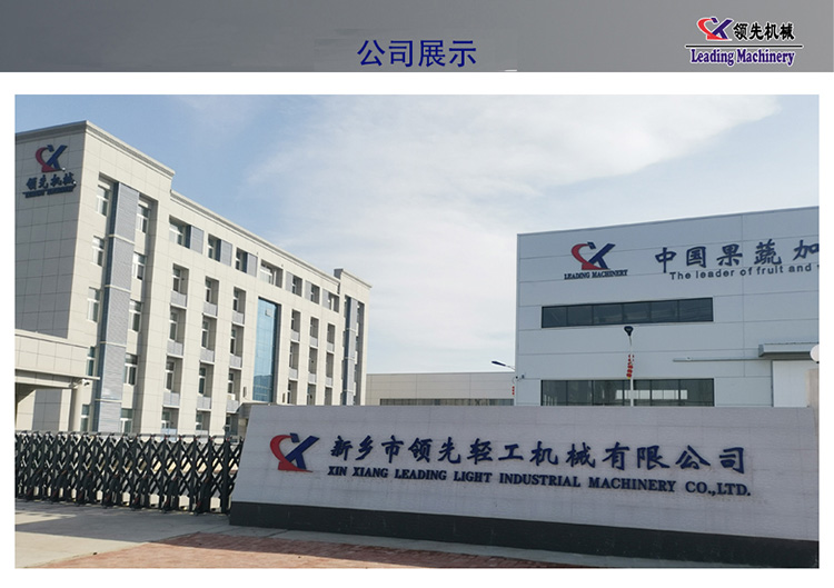 新乡市领先轻工机械有限公司成立于2007年,专门研发制造水果加工生产线设备,是我国生产葡萄酒、果露酒及多种果蔬汁加工设备的骨干企业。公司聚集了一批高素质技术人才,同时以中国农大、西北农大、北京农大、华南理工大等相关行业技术学院为依托,致力于自主研发、技术不断创新,在同行业中走在前面。2007年公司成立热带、亚热带水果加工技术研发中心,先后与华南理工大、海南大学、重庆柑桔研究所建立良好的合作关系,形成共赢战略伙伴。专门针对荔枝、柑橘(脐橙)、石榴、菠萝等热带、亚热带水果,研发出特殊的加工设备和加工工艺。目前已获得多项国家专利,并且公司产品已通过ISO9001质量认证。