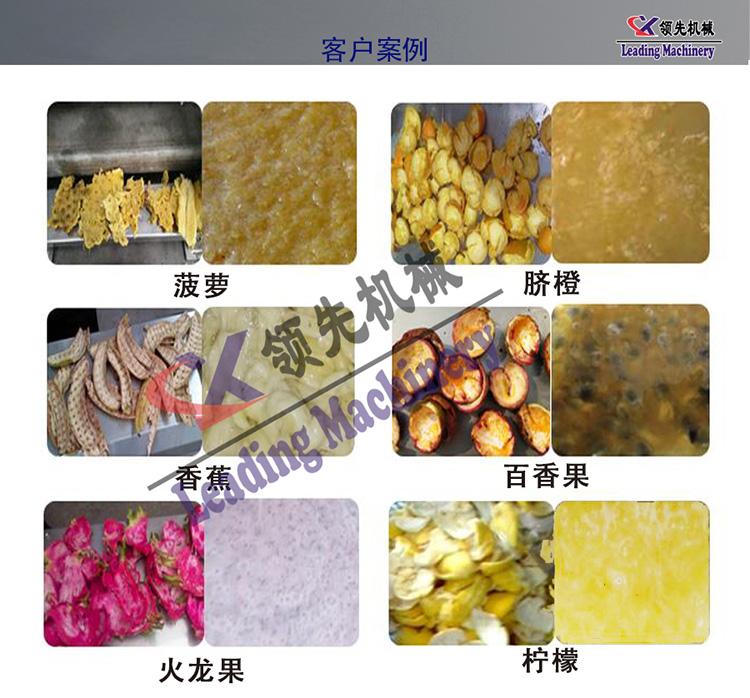 菠萝果汁生产线的特点是,产量大、速度快、自动化能力强、剥皮干净完整,果汁品质好;它的适用物料范围广泛,如柑橘、脐橙、柠檬、胡柚、香蕉、火龙果、菠萝等多种热带水果加工使用。